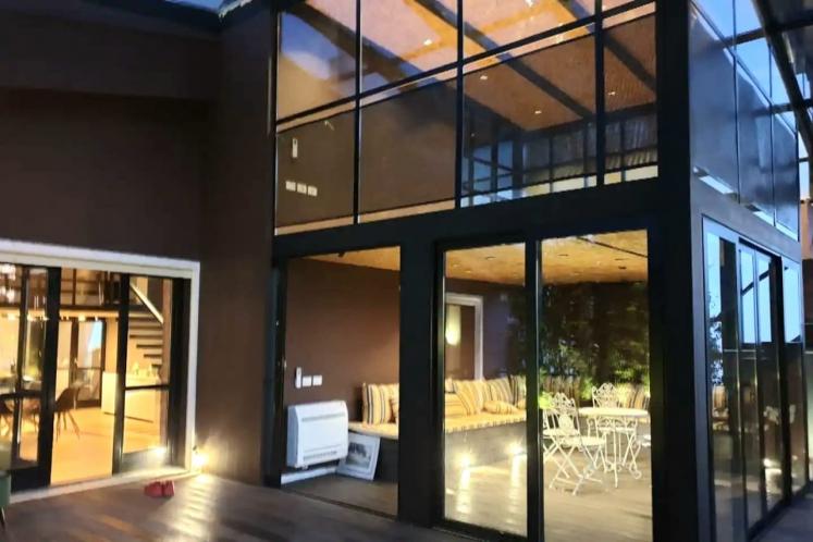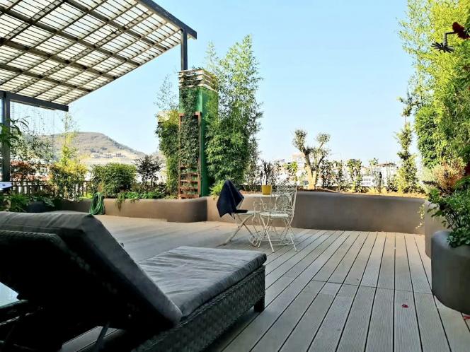 ▪︎ Verandë relaksuese me ndjesinë e një kopshti ekzotik me pamje nga kodrat e liqenit. Veranda është e rrethuar me gjelbërim , dush të jashtëm, lidhje Tv, termoizolim tarrace, panele diellore.