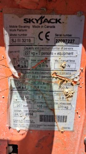 Piataforme Sky Jeck Modeli SJIII-3219 Matr 22106343 Viti 2016